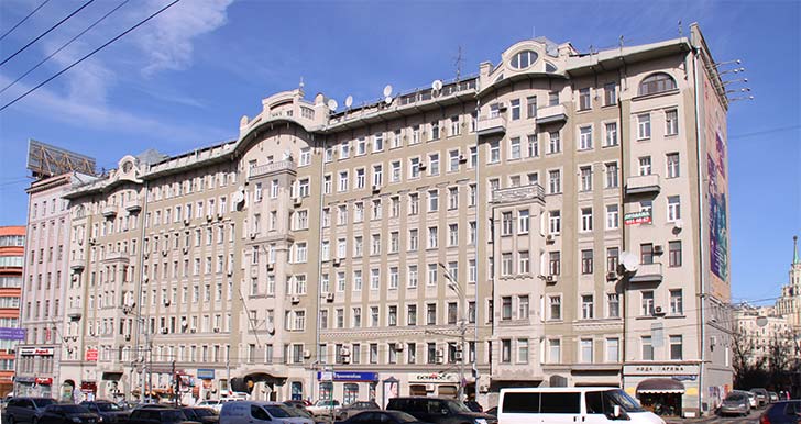 Сейчас в это трудно поверить. Но высотный дом у Красных ворот (Садовая-Спасская, 21) никогда не был самым высоким зданием Москвы, братья-высотки 1950-х годов его обгоняли. А вот соседний, доходный дом Афремова (Садовая-Спасская, 19), "тучерез", построенный в 1904 году, оказался на тот момент высочайшим зданием не только Москвы, но, кажется, и всей Европы. Правда, высочайшим он оставался всего несколько лет. Вскоре началась гонка этажей, и сразу несколько московских зданий превзошли дом Афремова и по высоте, и по этажности. Коварный удар нанес доходный дом (Садовая-Спасская, 17, архитектор И.И.Флоринский) торговцев молоком Орликов, пристроенный к дому Афремова через десять лет и превзошедший его по высоте на обидные полтора-два метра. На верхнем фото дом Орликов хорошо виден: левые четыре ряда окон, над которыми теперь смонтирован рекламный щит. * * *